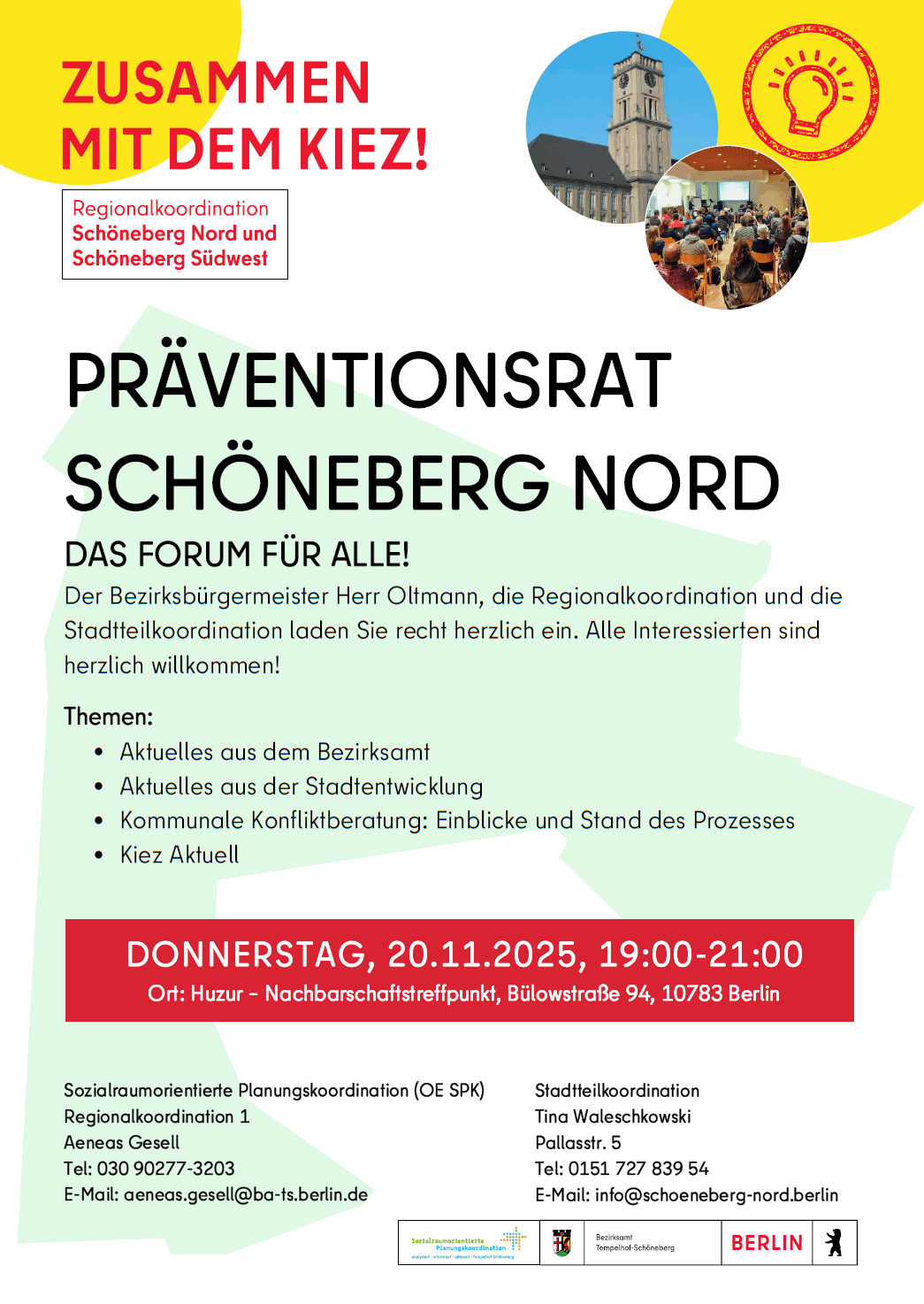 Präventionsrat20. November 2025Bezirksamt, stadtteilkoordination Datum/Zeit Date(s) - 20. Nov. 202519:00 Veranstaltungsort Huzur Kategorien Bezirksamt stadtteilkoordination teilen teilen teilen teilen teilen E-Mail drucken